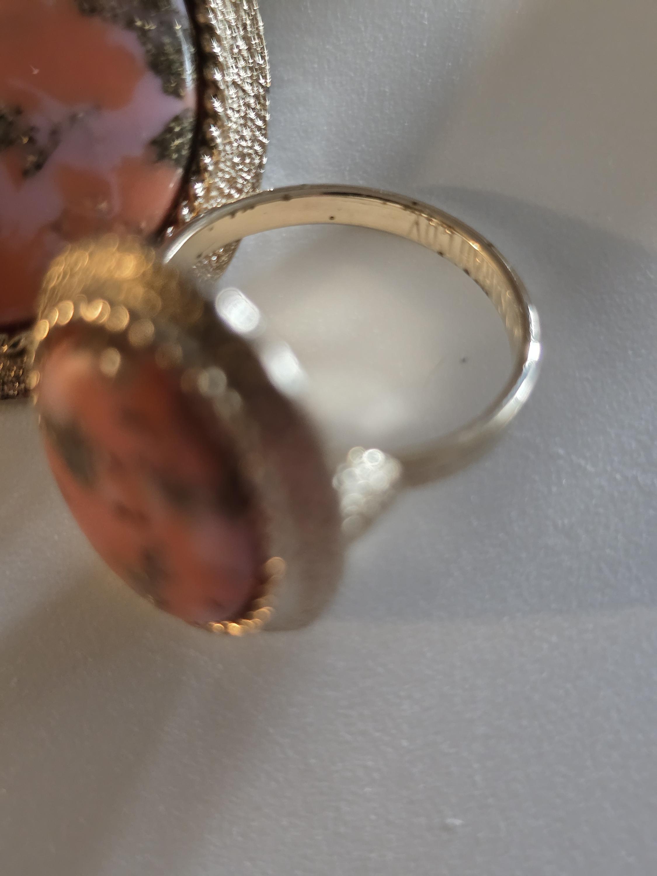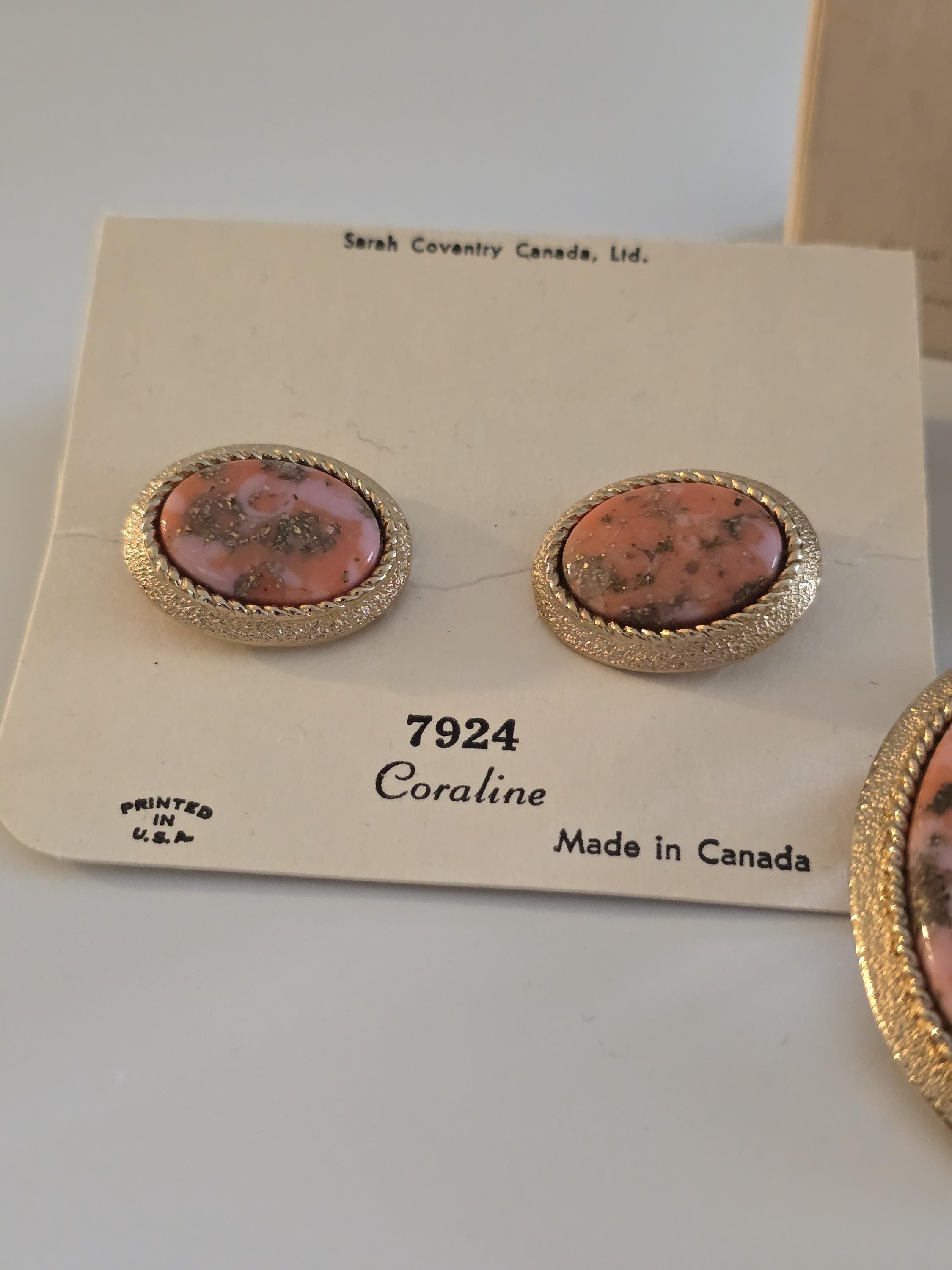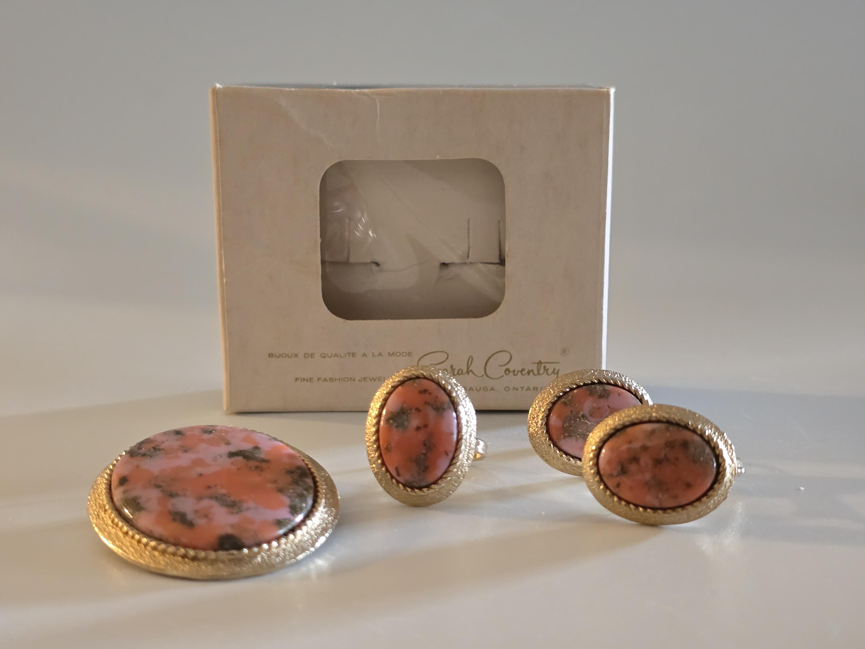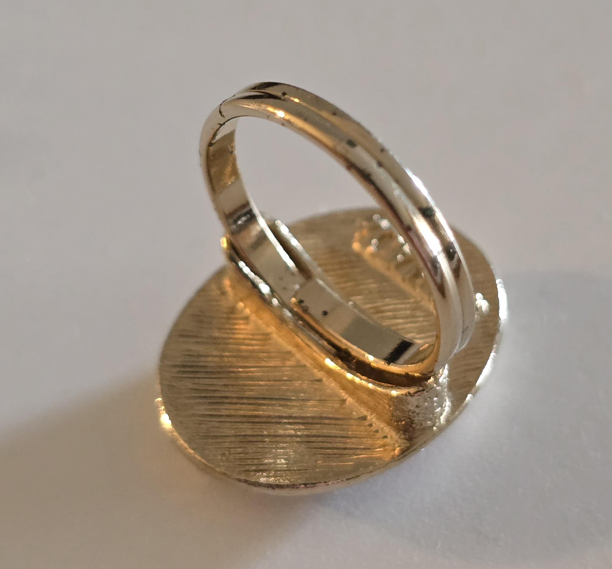 The ring is adjustable. Clip on earrings. The brooch can be worn also be worn as a pendant.