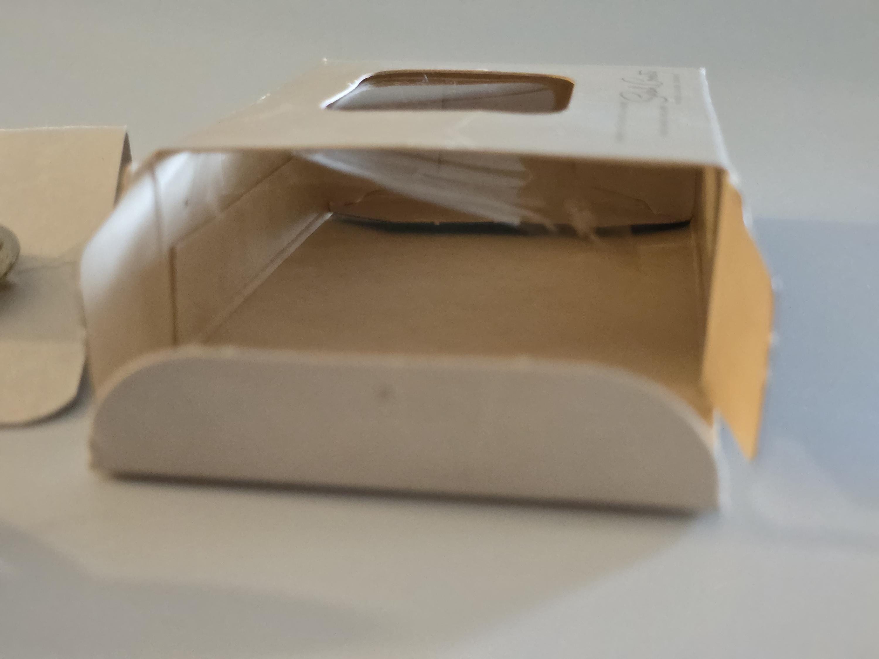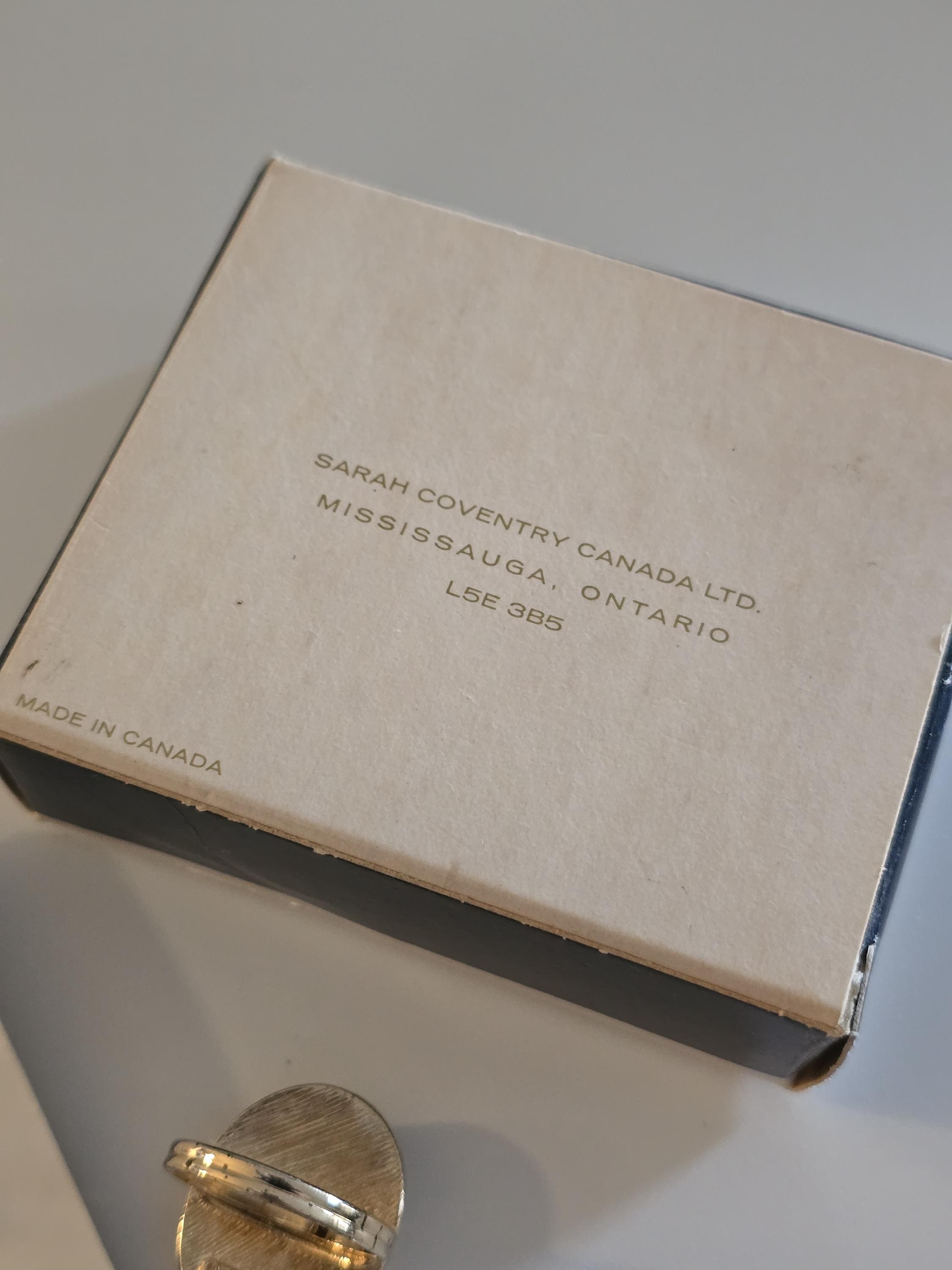 Original box for the earrings. Please note the cello in the window of the box is peeling off.
