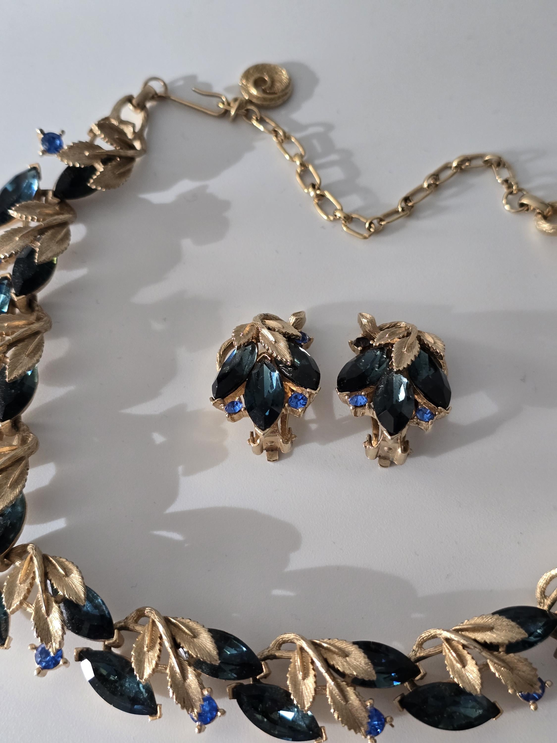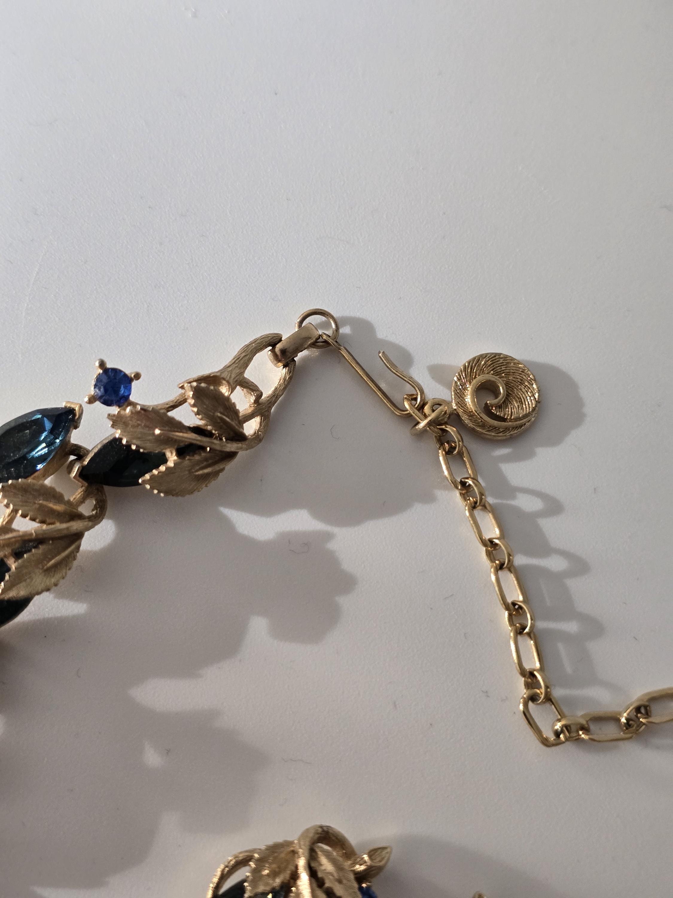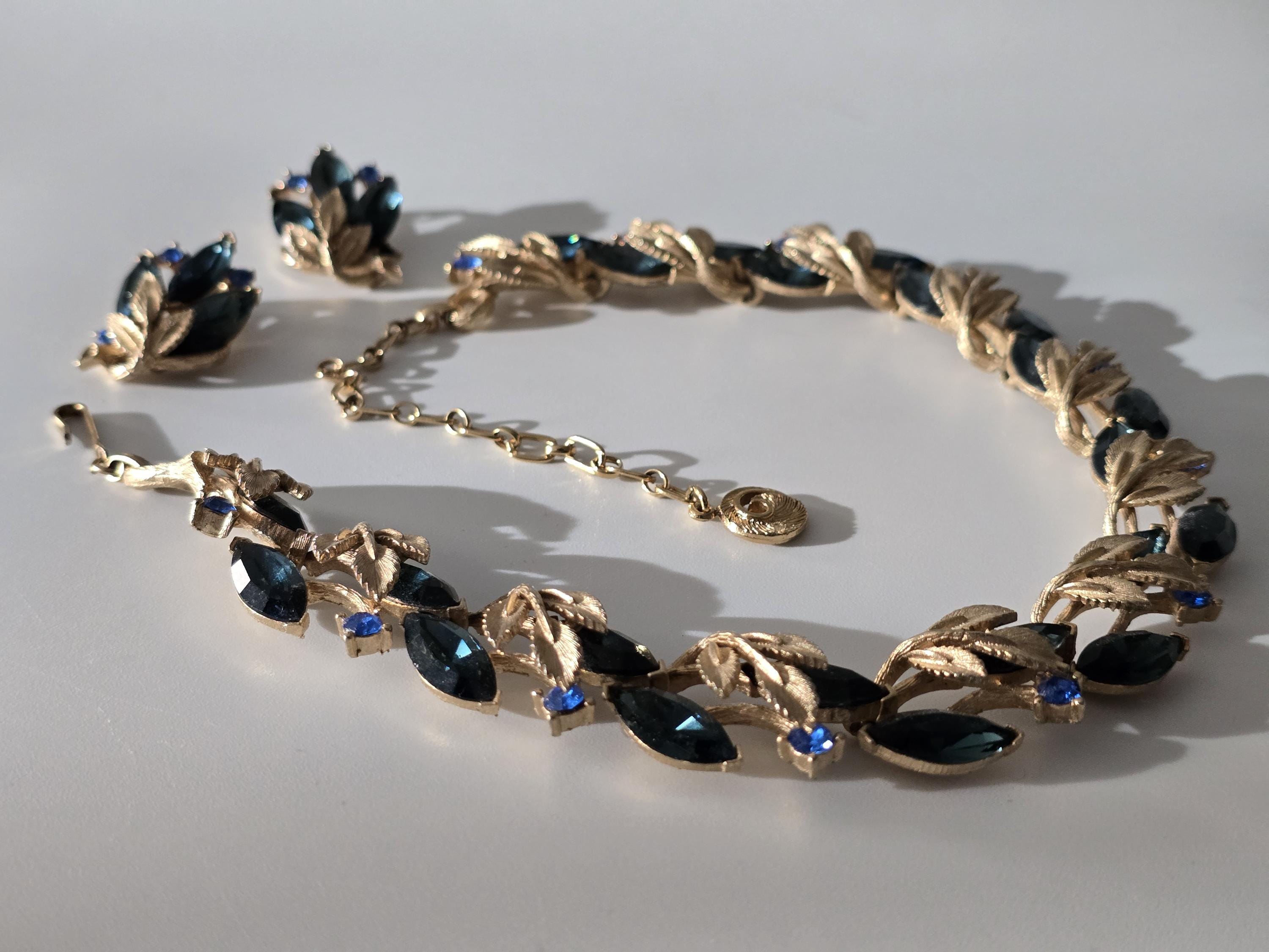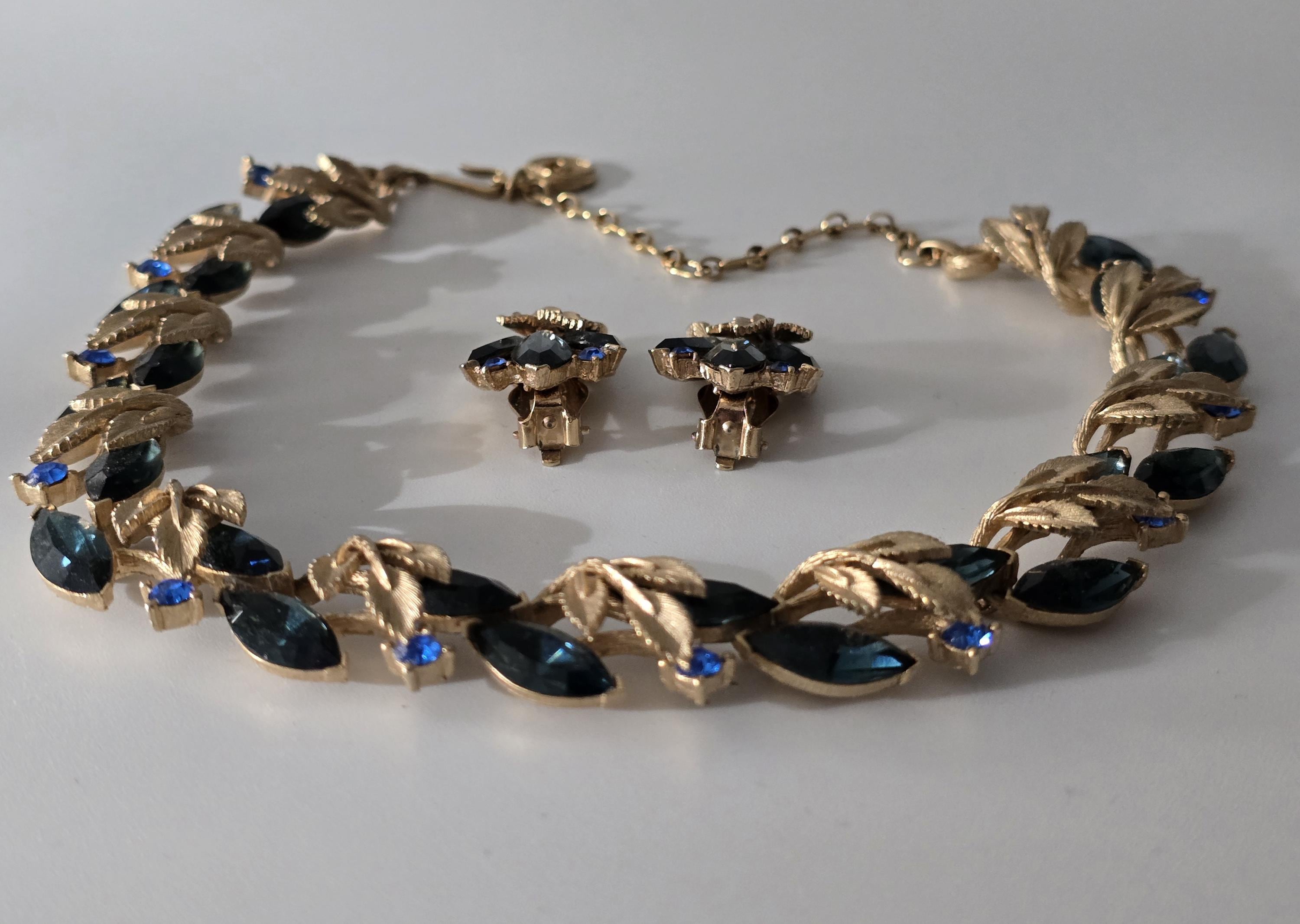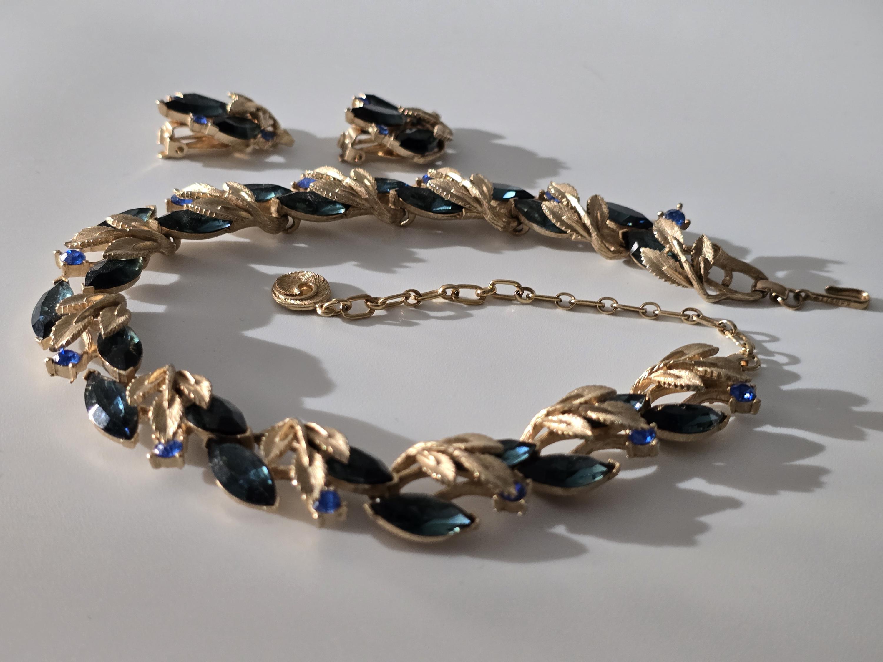 Stunning LISNER gold tone with blue crystals! Necklace and clip on earrings.