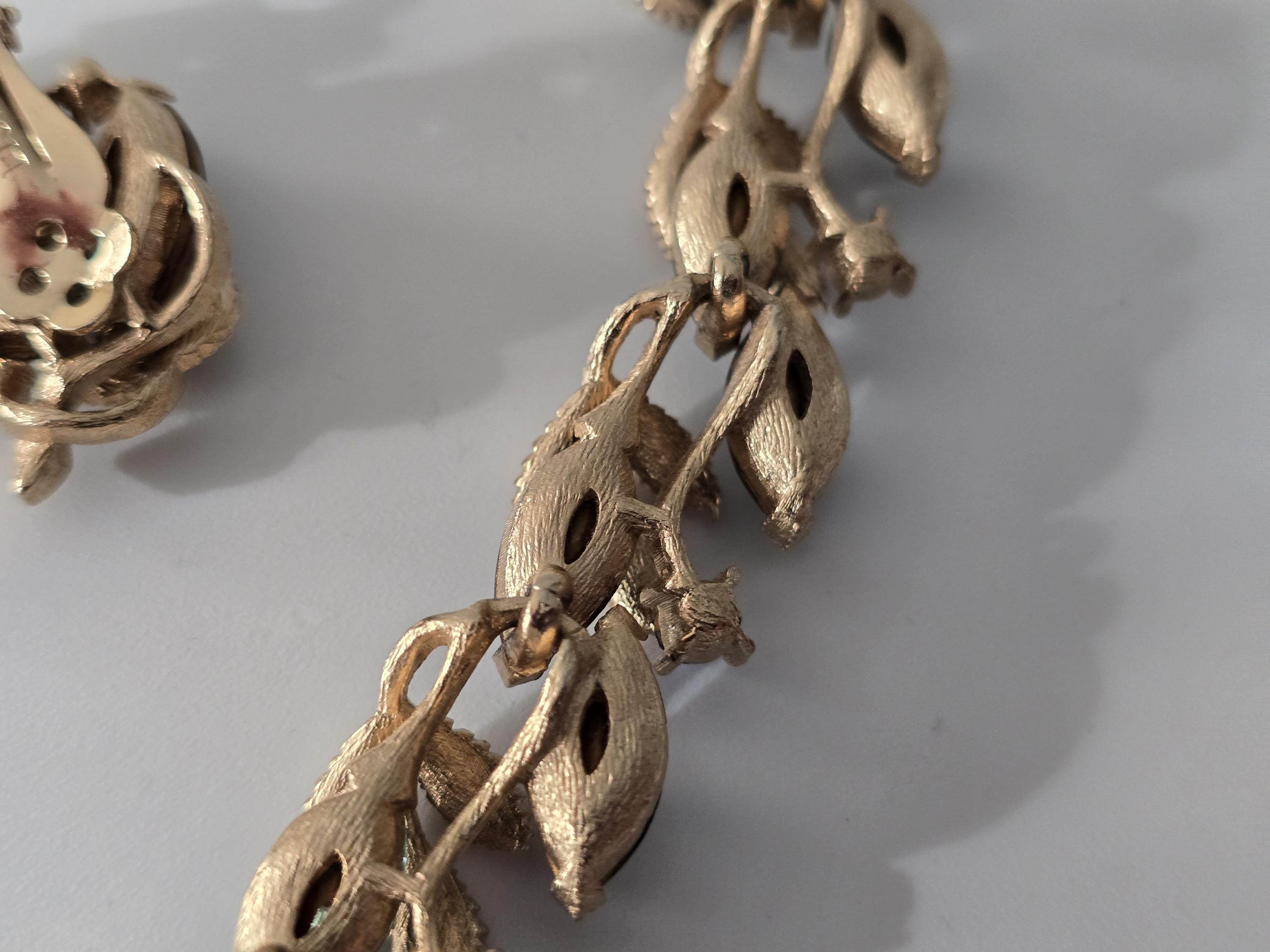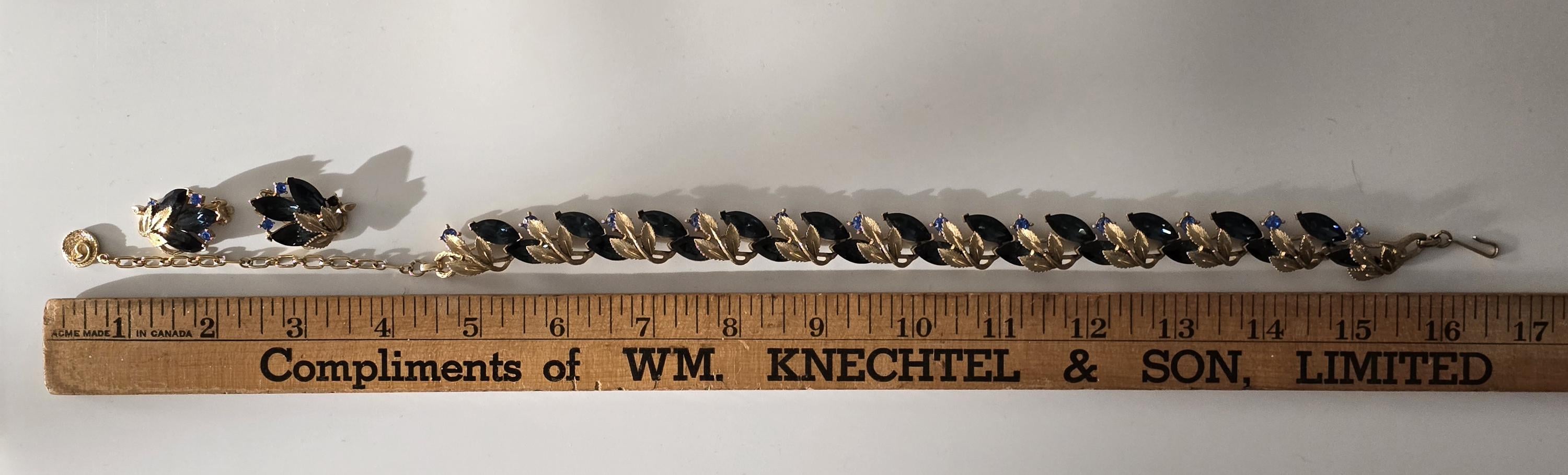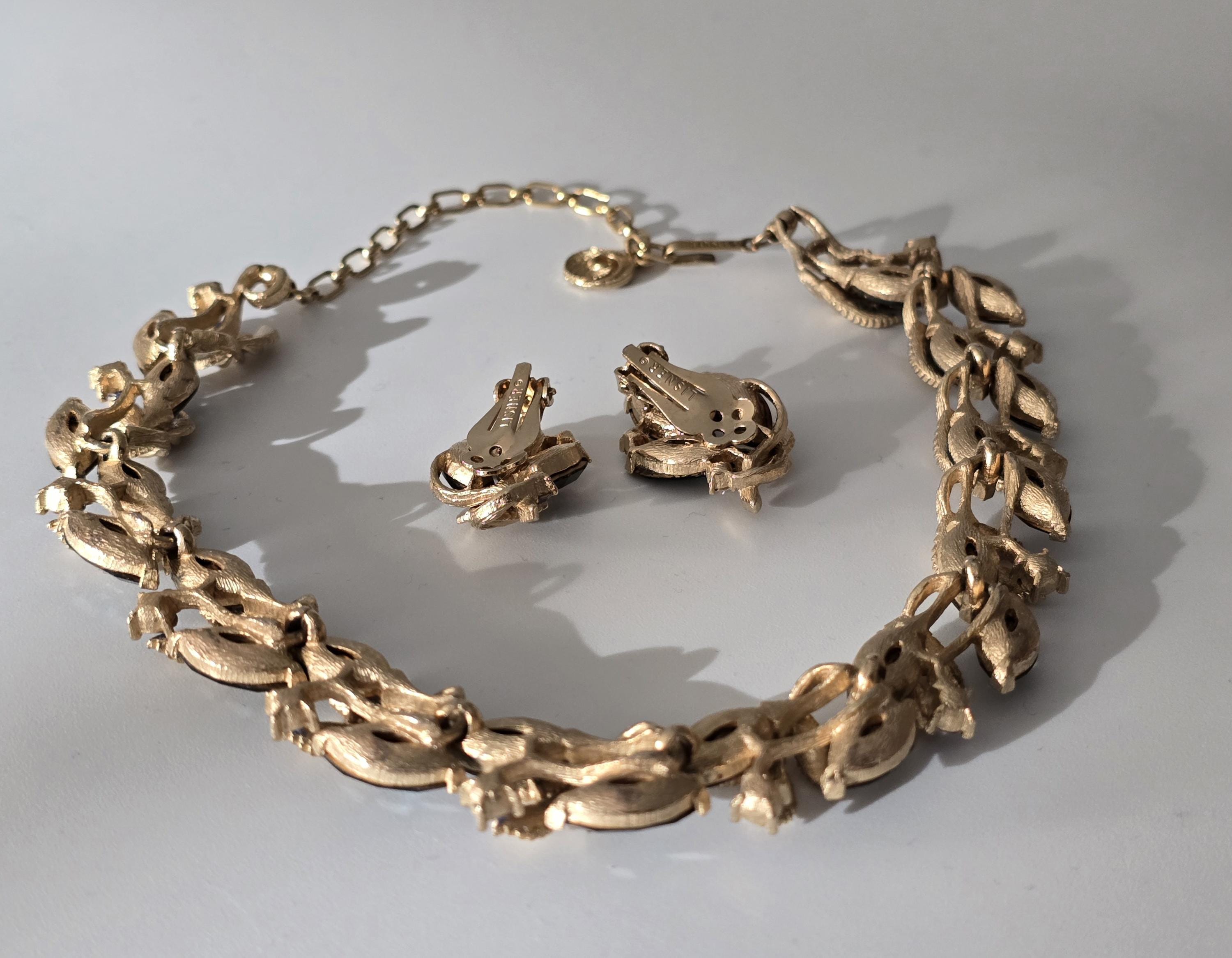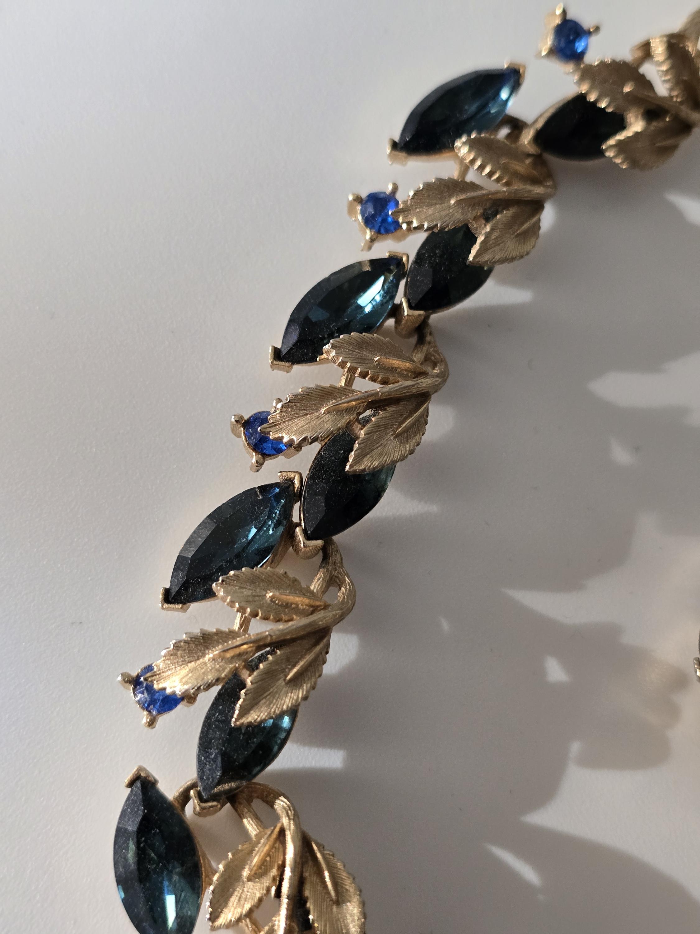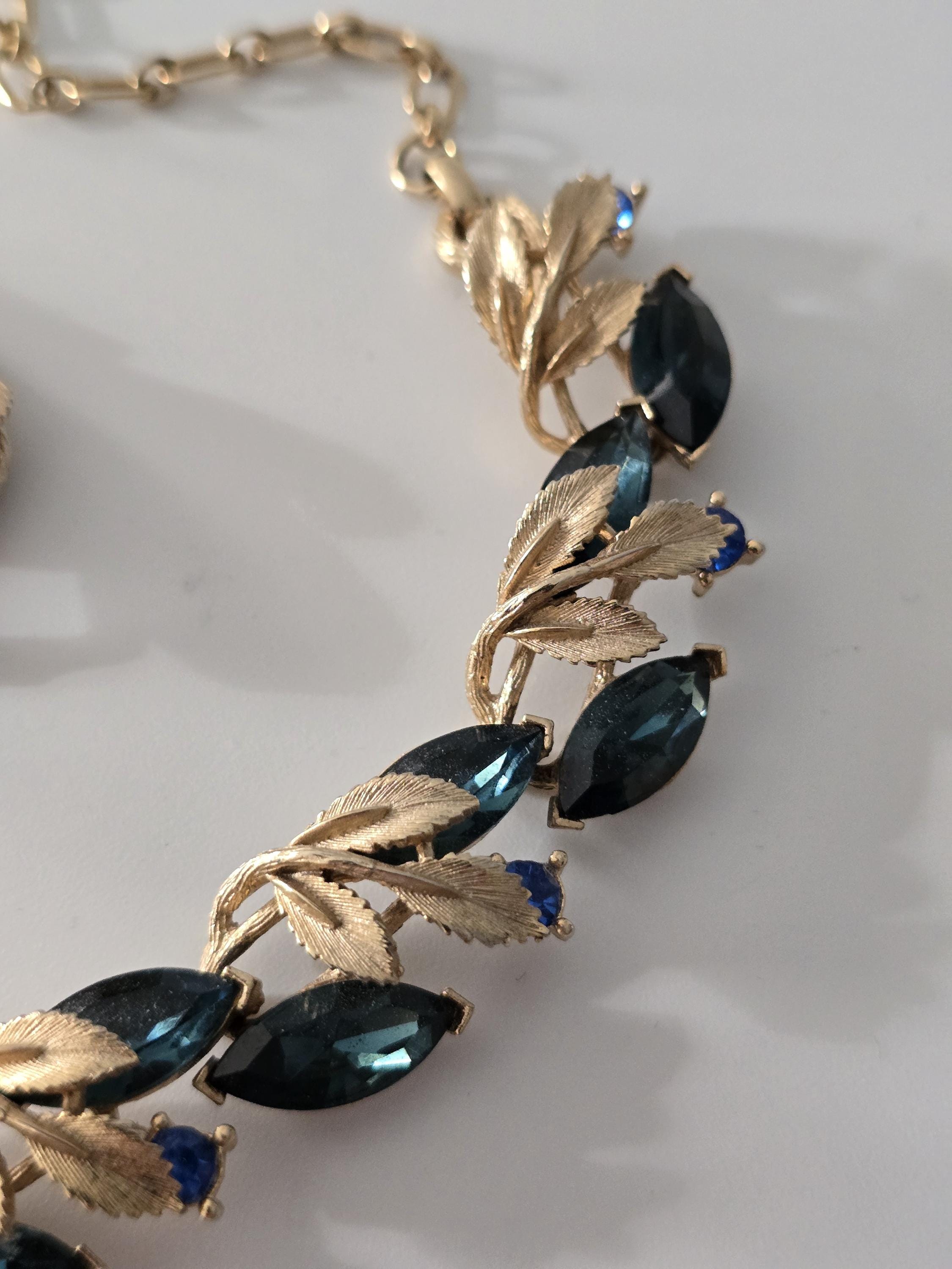 Stunning LISNER gold tone with blue crystals! Necklace and clip on earrings.