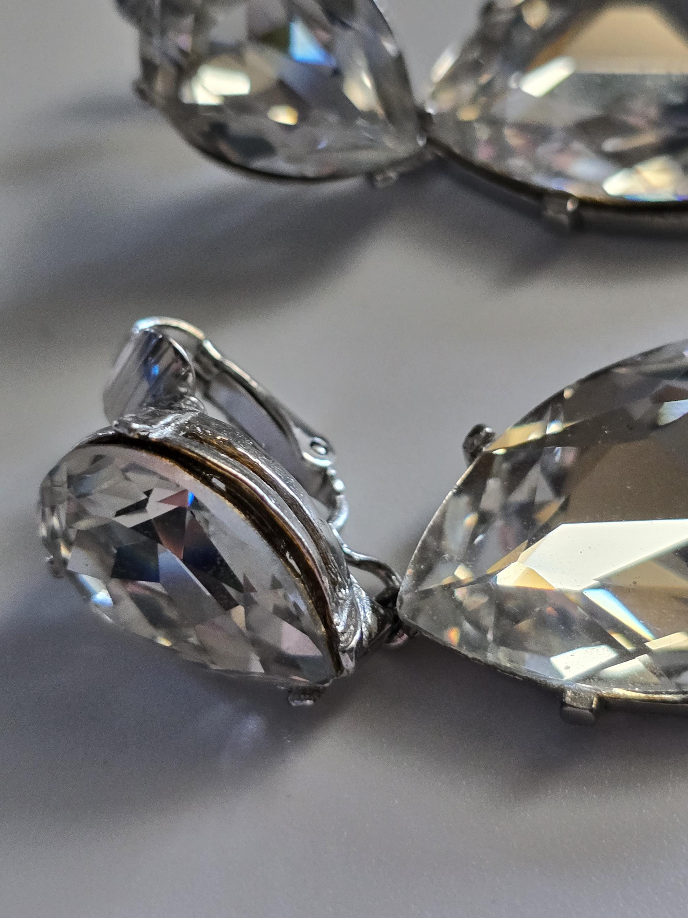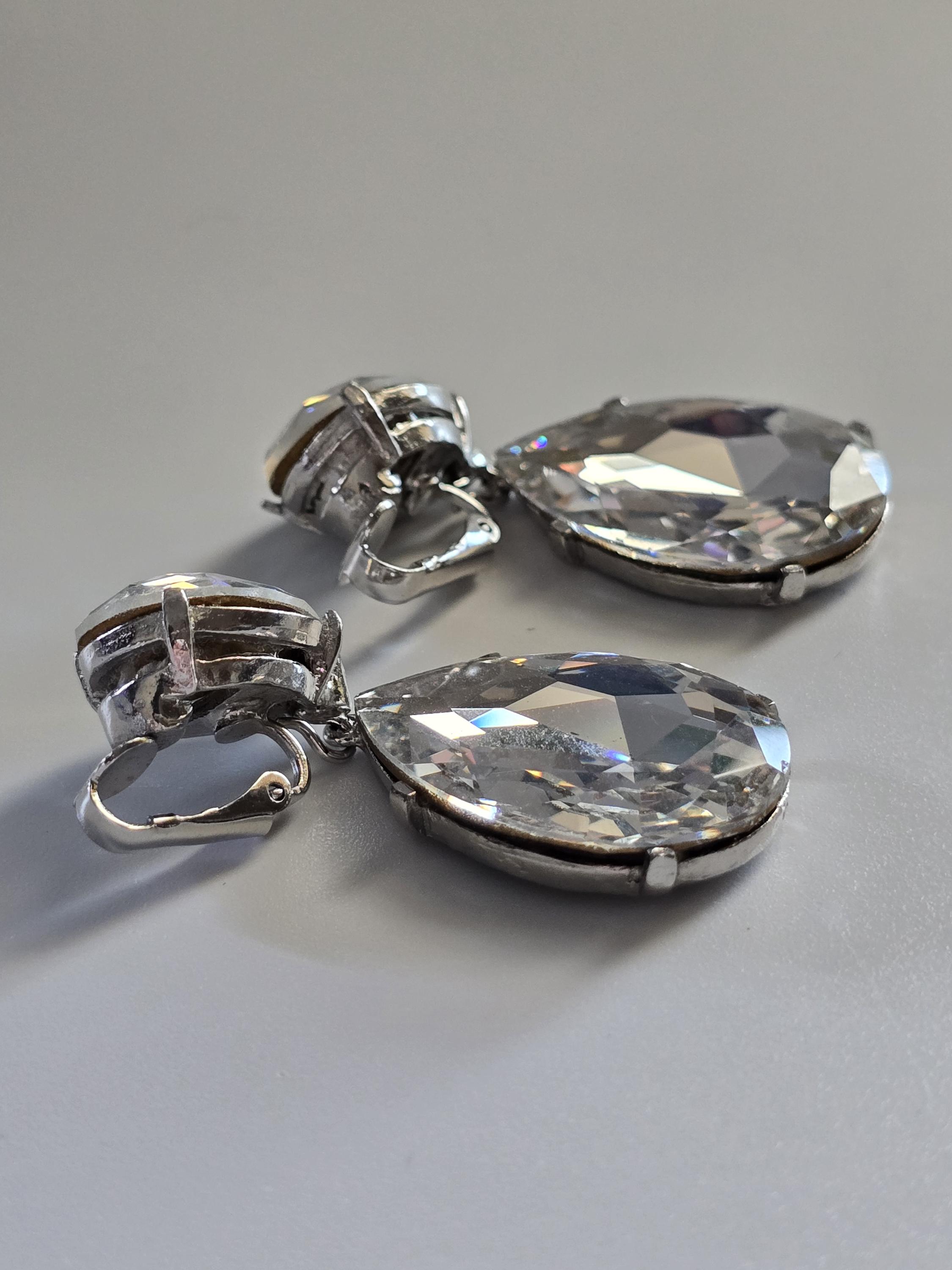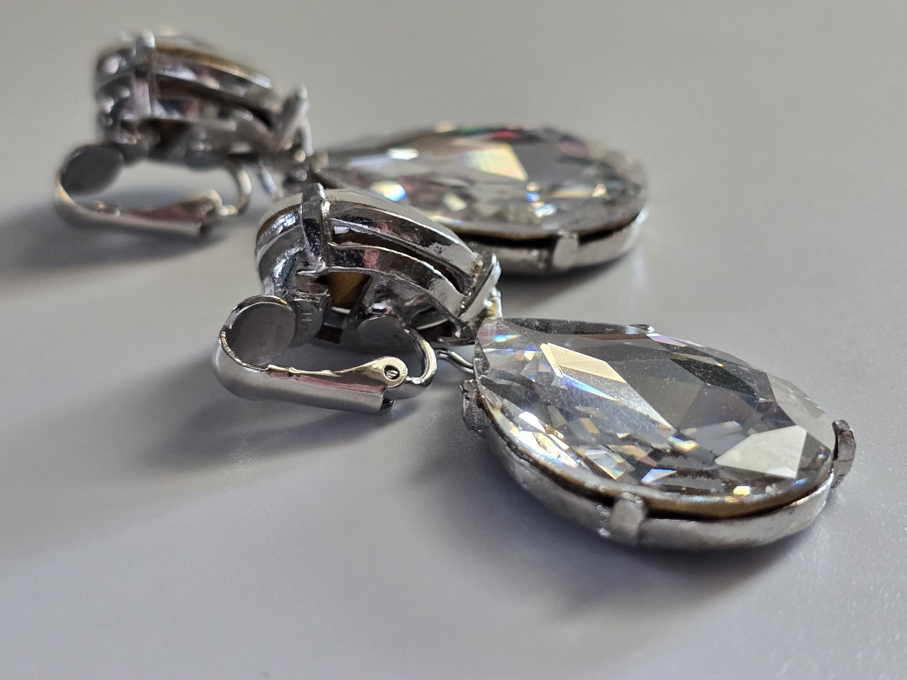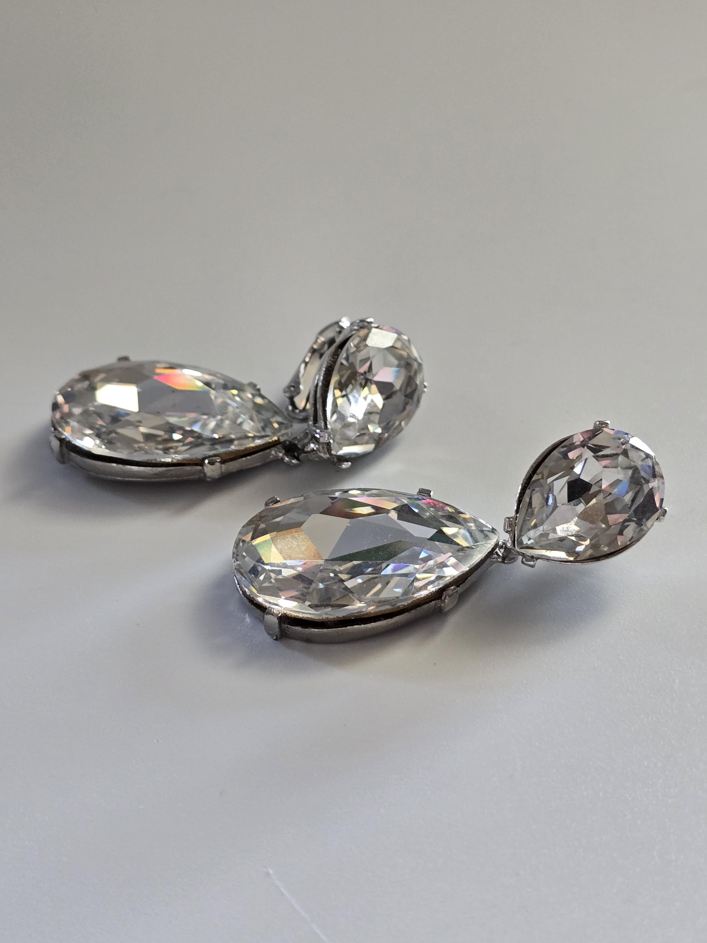 Amazing set of crystal teardrop clip on earrings signed Kenneth Jay Lane.