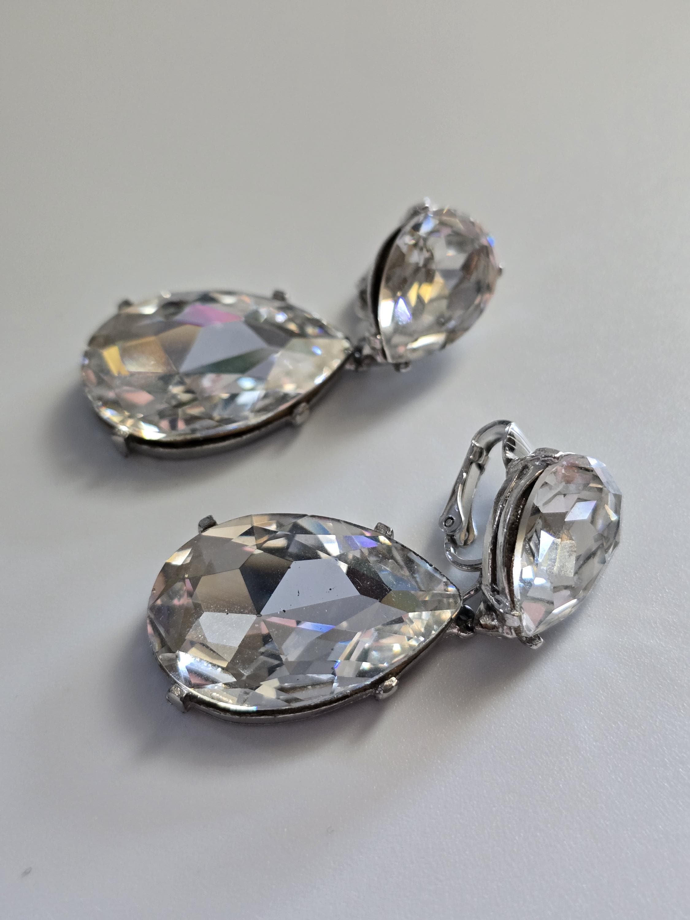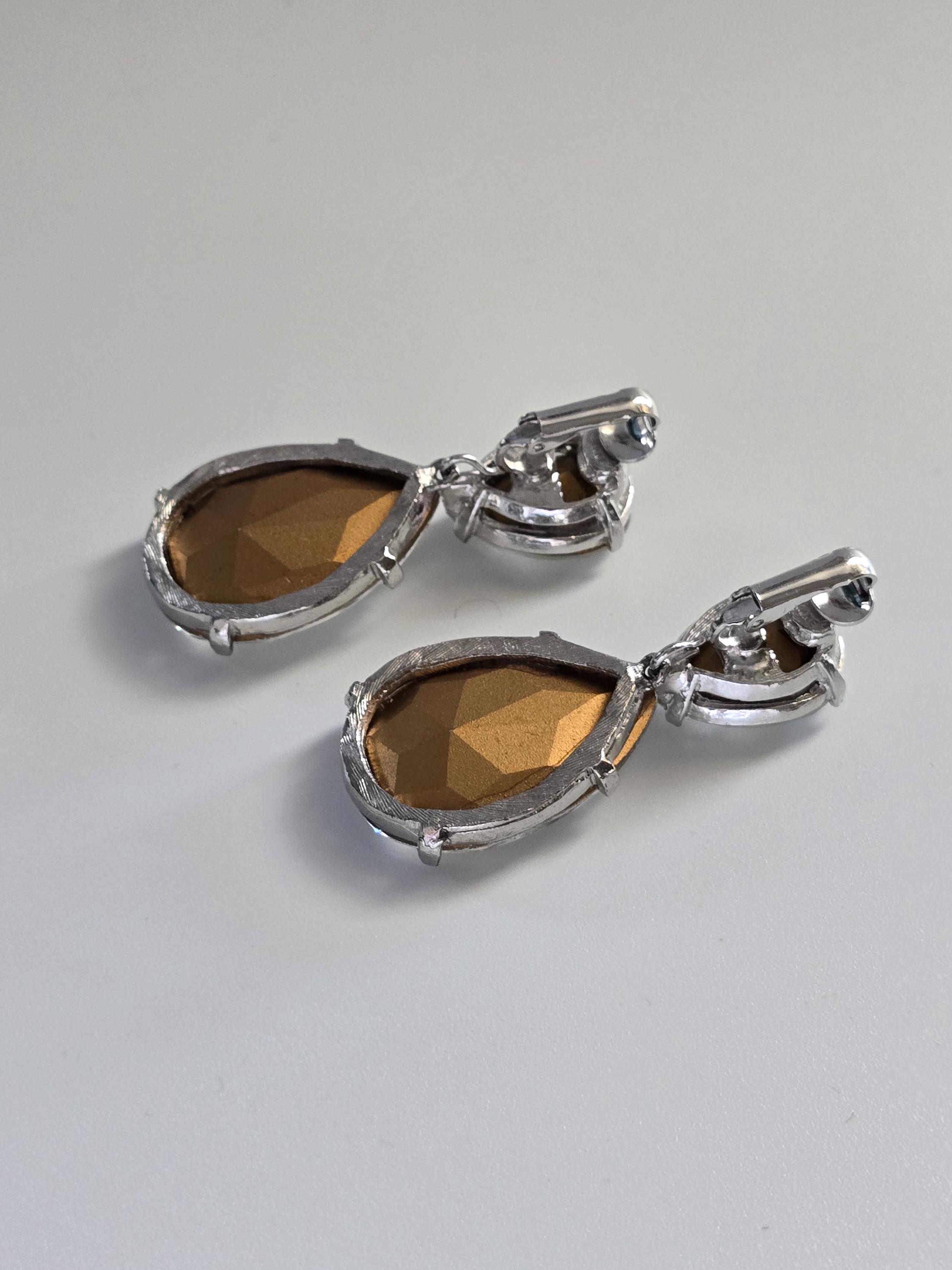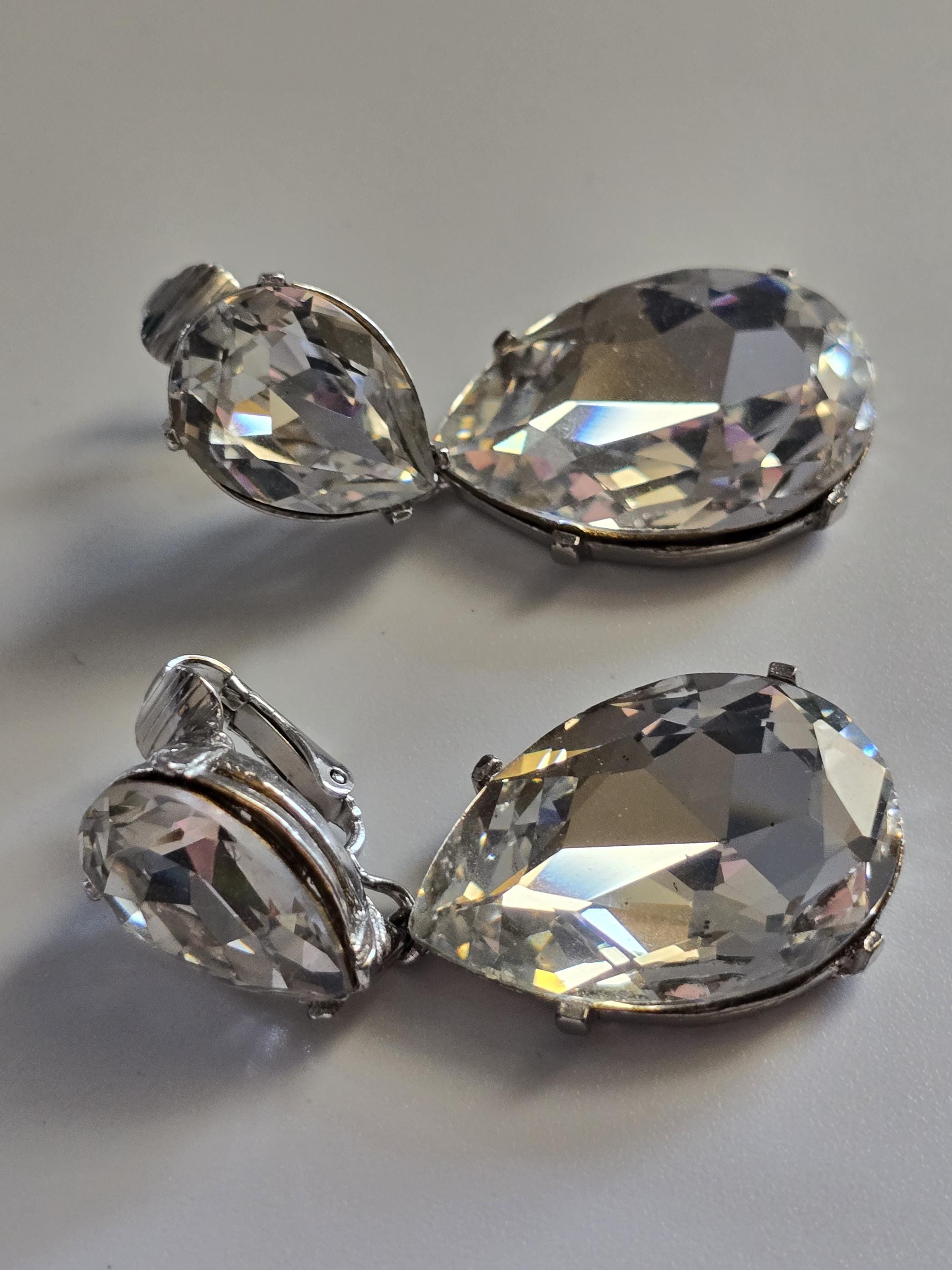 Amazing set of crystal teardrop clip on earrings signed Kenneth Jay Lane.