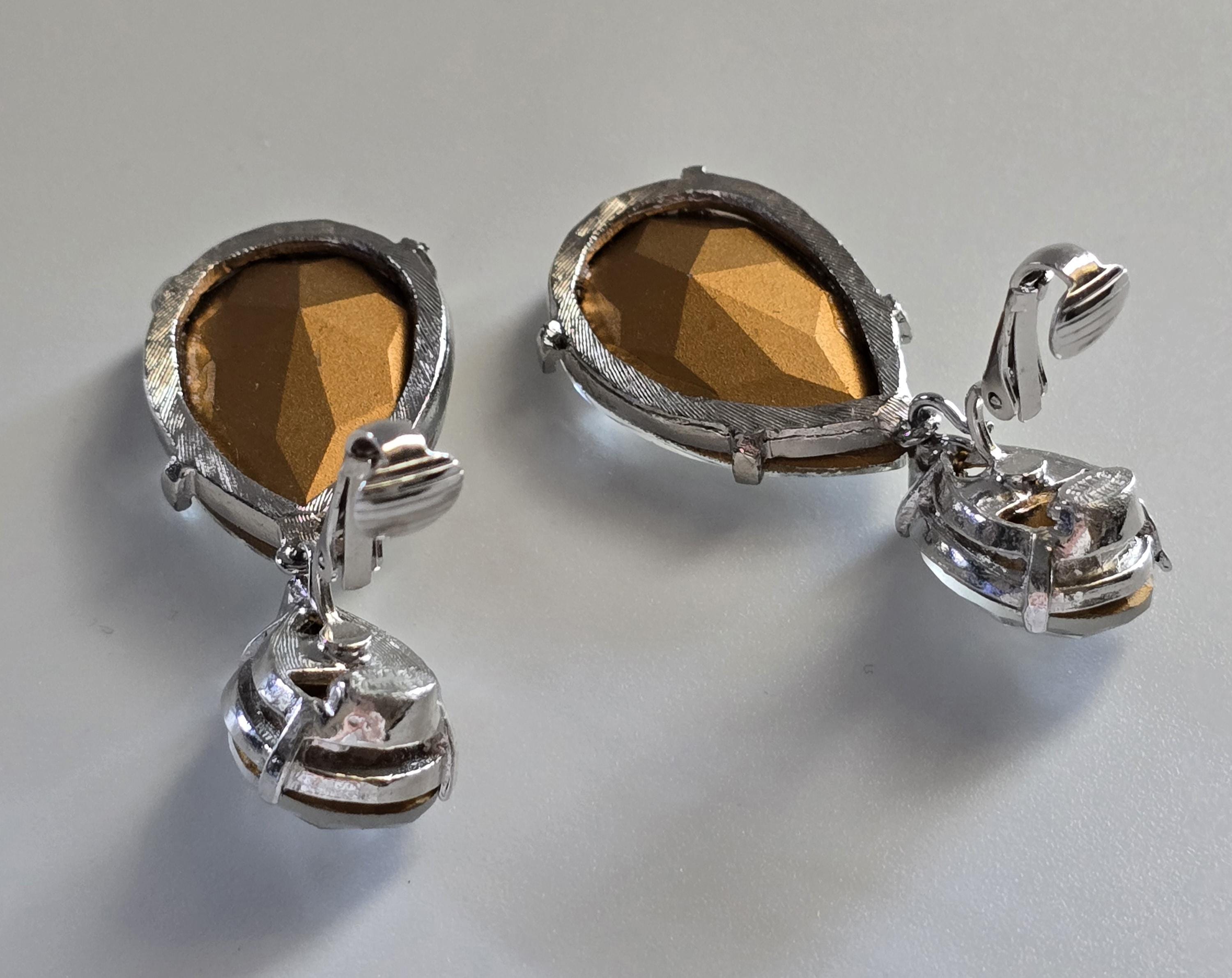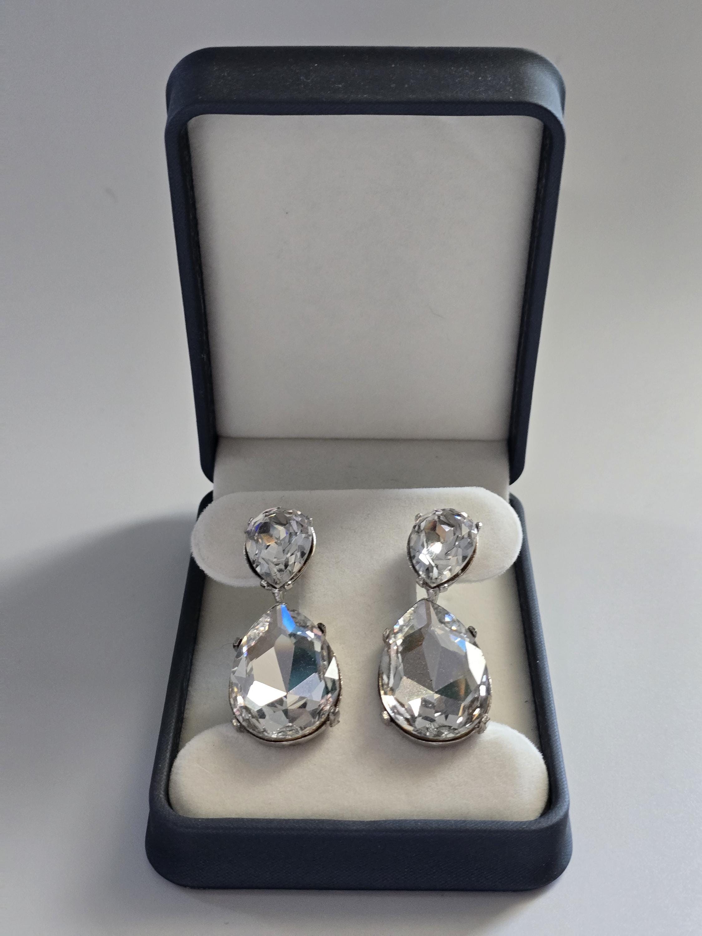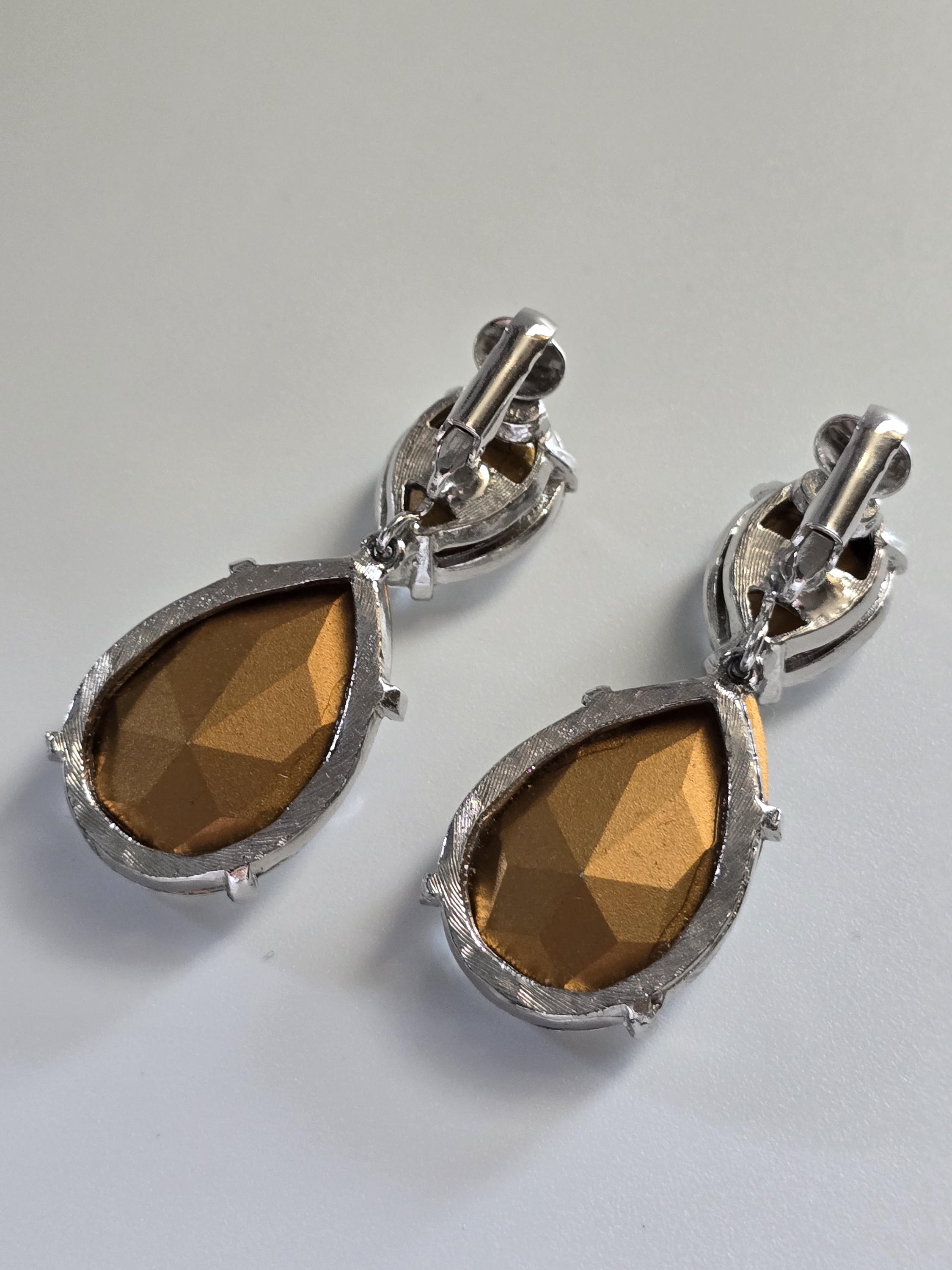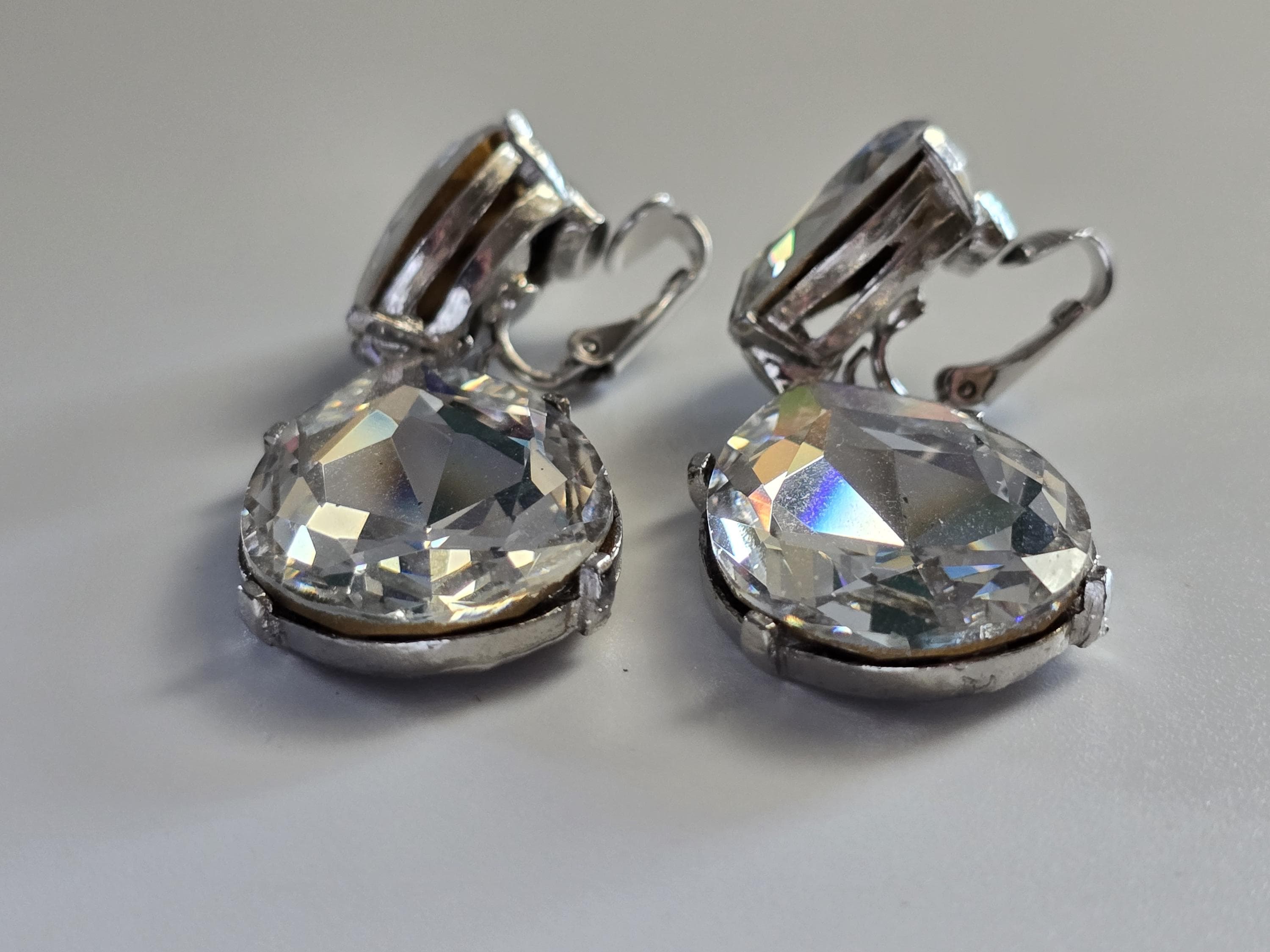 Amazing set of crystal teardrop clip on earrings signed Kenneth Jay Lane.